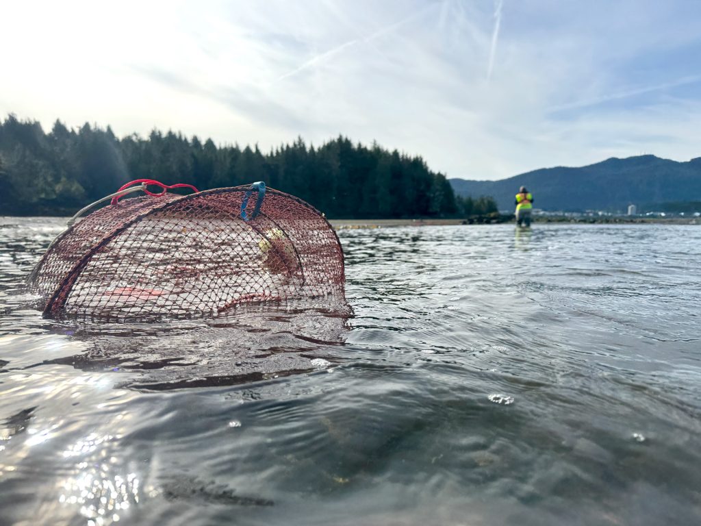 Both adult and larval forms of European Green Crab (EGC) are monitored at several locations by the Prince Rupert Port Authority’s Environmental Sustainability Team. The adult trapping program consists of deploying Kufa folding prawn traps along intertidal areas over a 24-hour period, as well as beach walks, to look for adult EGC. PRPA also established a zooplankton program in 2017 to monitor for the larval forms of EGC. Several sites in the inner and outer harbour are sampled frequently using a plankton tow net. Samples are then analyzed by a consultant for the presence of any EGC larvae. An inventory is also taken of general zooplankton diversity and abundance. Larval EGC were detected in several samples in 2019 and 2020 and adult EGC were officially found in the Prince Rupert region in August 2023. This discovery launched the DFO’s North Coast EGC Response Initiative in 2024, which involves PRPA and all Nations in the region. Each group contributes a significant amount of effort conducting detection trapping in their respective regions to assess the extent of the EGC, understand where they have established themselves and then to manage populations through depletion trapping. Efforts also contribute to the development of DFO’s aquatic invasive species management strategies.