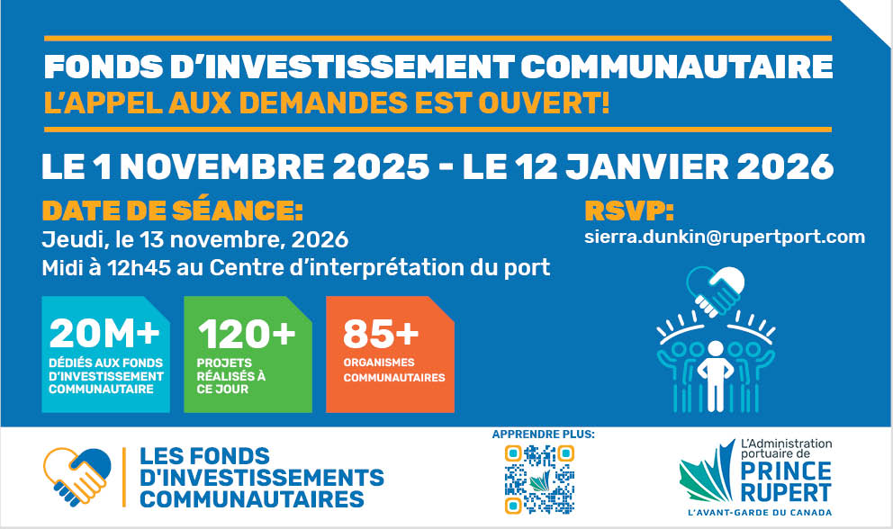 L’Administration portuaire de Prince Rupert est fière d’être un partenaire communautaire dans plus de 120 projets tant que notre Fonds d’investissement communautaire. Depuis 2010, l’APPR a dédié plus de $20.7 millions en soutenant des initiatives qui font une différence pour les habitants du nord-ouest de la C.-B.