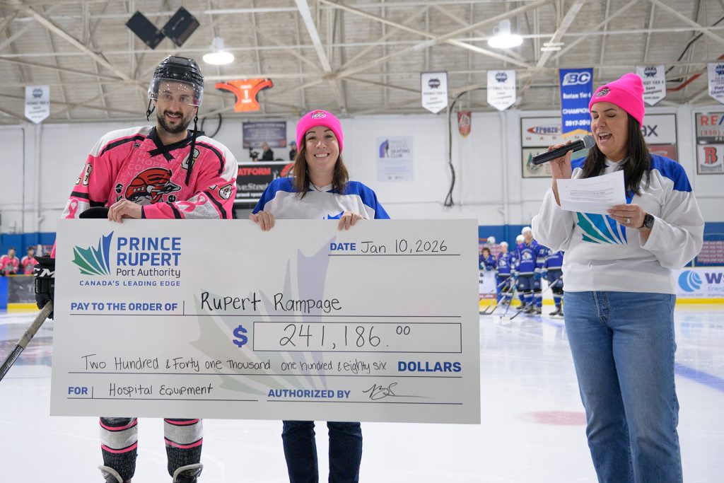 PRINCE RUPERT, BRITISH COLUMBIA – The Prince Rupert Port Authority (PRPA), Rupert Rampage hockey team, and North Coast Health Improvement Society have partnered to purchase several pieces of essential equipment for Prince Rupert Regional Hospital. These investments were made possible through the record-breaking Rampage Fights Cancer campaign, which PRPA’s Community Investment Fund supports as key sponsor.