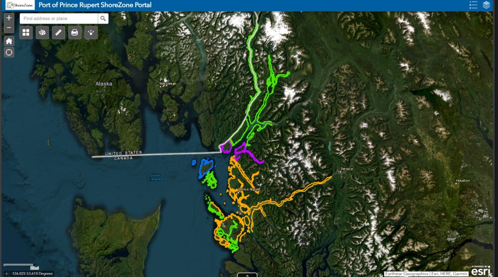 The ShoreZone Imaging Survey was funded by the Prince Rupert Port Authority, Pacific Northwest LNG, Aurora LNG, the Gitxaala Nation, the Metlakatla First Nation, the Nisga’a First Nation, as well as BC Ministry of Environment.